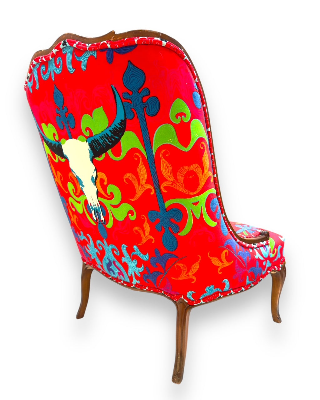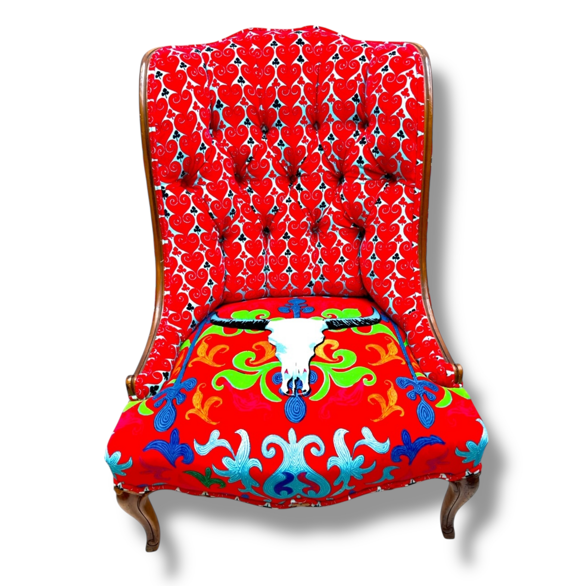 It features our Medieval Hearts Red fabric which is available by the metre, and customised Longhorn panels.