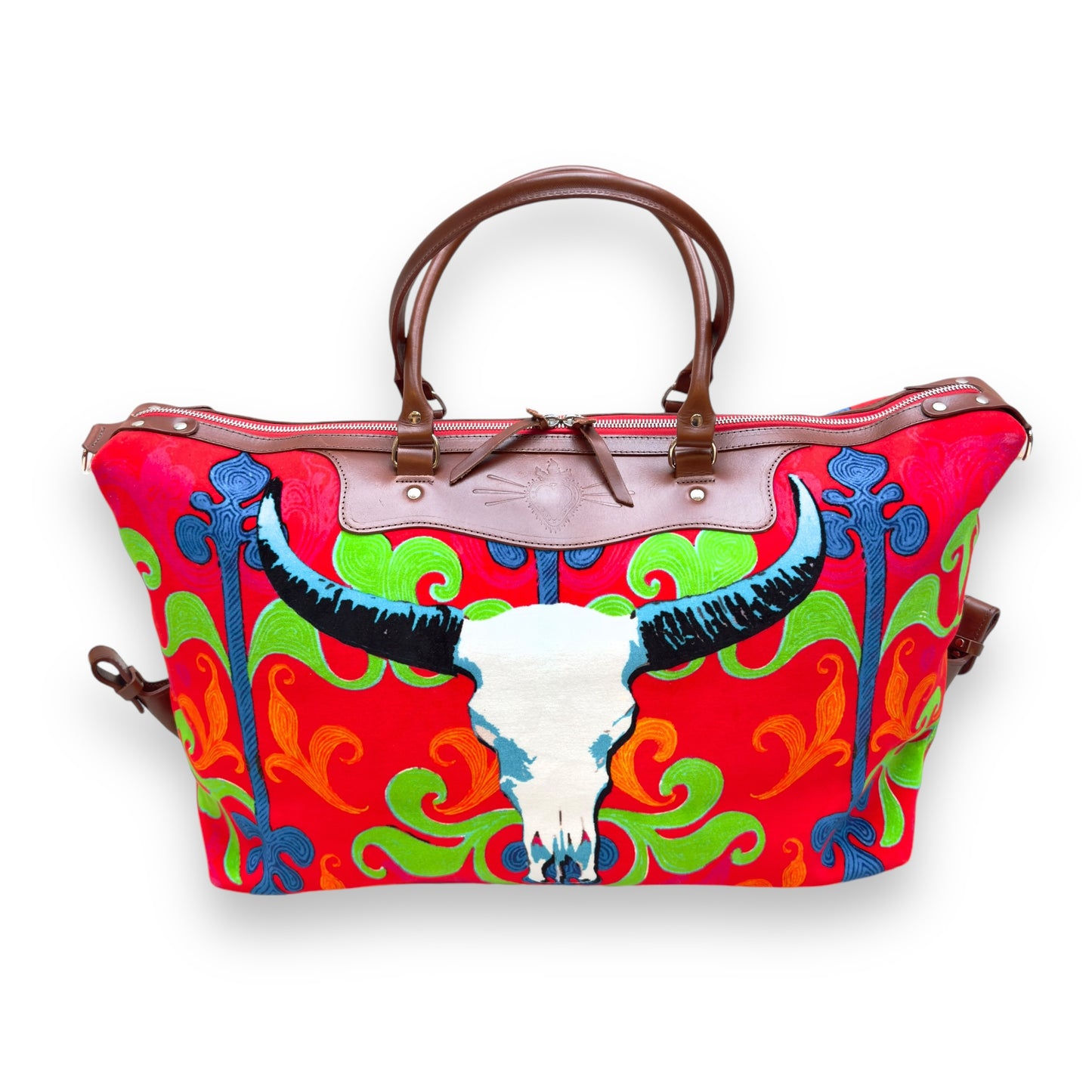 The Mexican Longhorn Red Weekender is a bold statement piece.