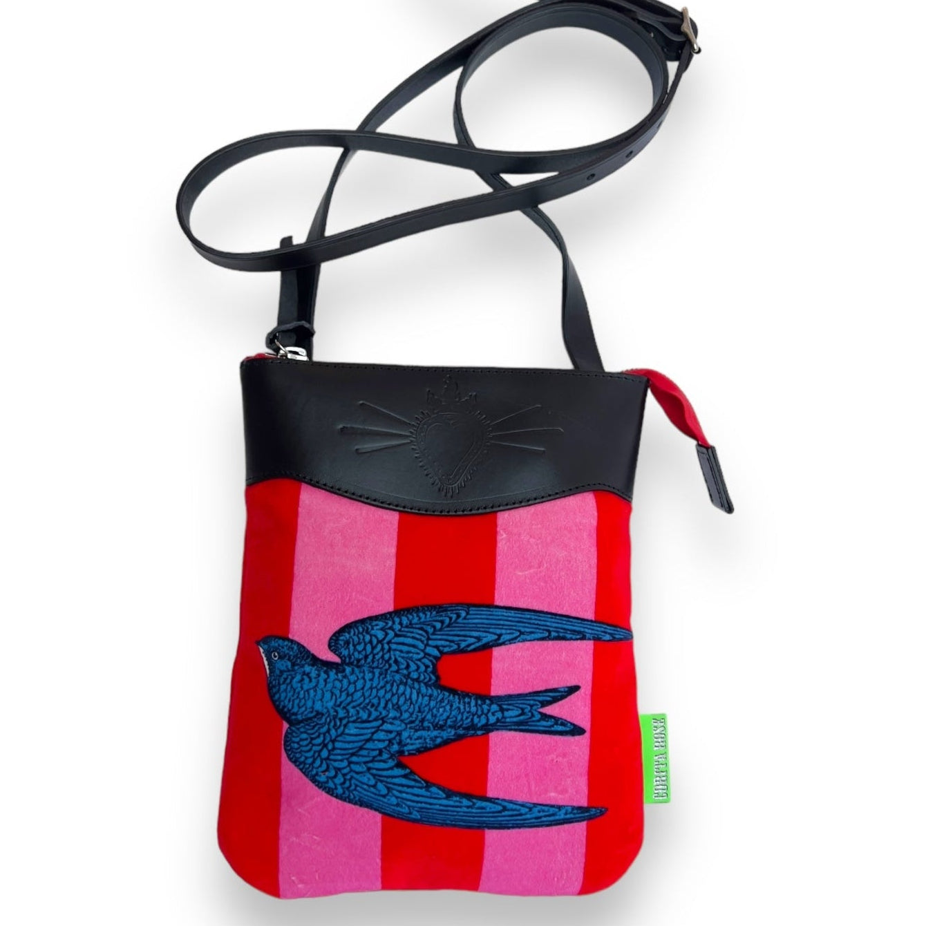 Make a splash with this beautifully crafted little cross body bag - Sleek and stylish, emblazoned with a Swift, this 28cm x 20cm piece is made of the finest leather, strong velvet with a robust canvas interior.